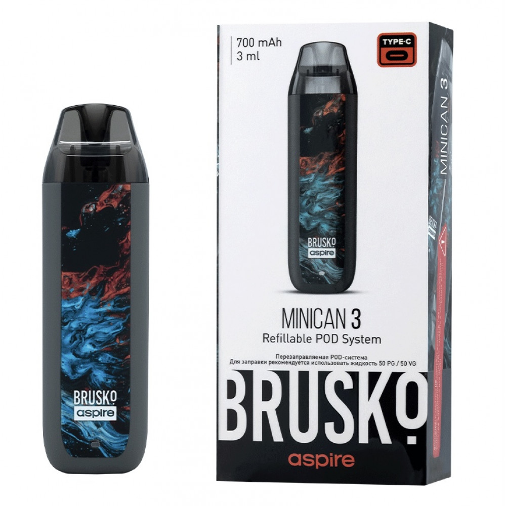 Перезаправляемая Под-Система Бруско Миникан 3 (Brusko Minican 3) 700 mah, Серый Флюид - купить в Моршанске